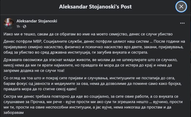 За трагичната смрт на сестра му и внуката, во Тафталиџе, потфрлија МВР, социјалните служби, целиот систем, вели братот