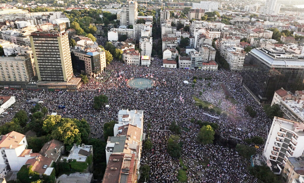 Улиците на Белград набрзо беа преполни, а фотографиите и воздушните снимки покажаа колку студенти и граѓани се собраа на Славија.