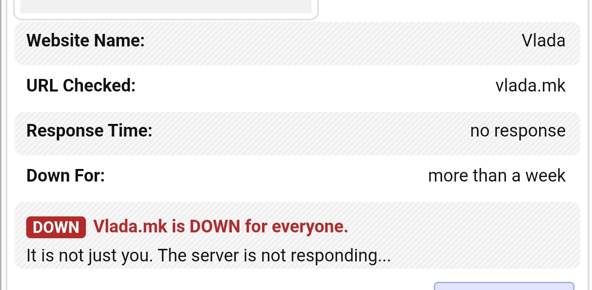 Неплатен хостинг, па не може серверот да опслужи посети колку што претпоставувале дека може да има месечни посети (иако сме на почеток на месец)