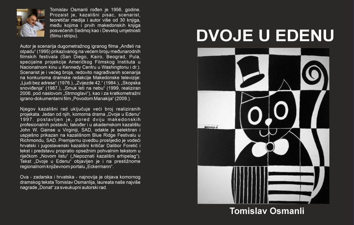 Деновиве, во Задар, Република Хрватска, од печат се појави книгата со камерната театарска пиеса „Двајца во Еден“ на македонскиот прозаист и драмски автор Томислав Османли. Преводот и уредувањето на изданието го реализира истакнатиот писател Никола Шимиќ Тонин, а книгата излегува како заедничко издание на три задарски книгоиздателства: Хрватското книжевно друштво – Задар, Библиотеката Donat и издавачката куќа “ВВВ”.