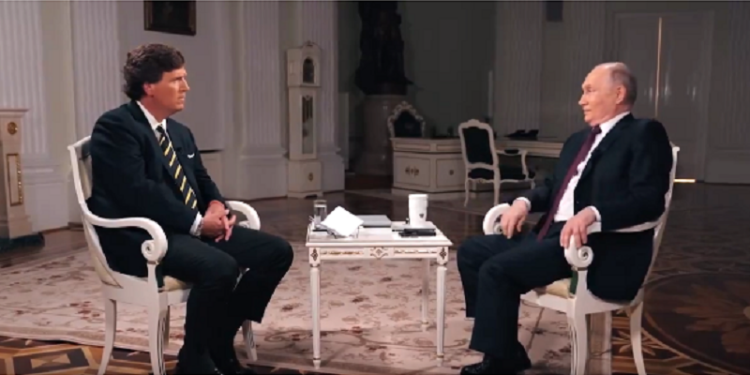 Медиумската личност во четвртокот навечер на X и на неговата веб-страница го сподели интервјуто на Путин , во кое му дозволи на рускиот диктатор нашироко да ги ламентира своите сфаќања за војната во Украина, за „денацификацијата“, можните мировни преговори по негов терк и за новинарот на Волстрит журнал Еван Гершкович, кој е во руски затвор речиси една година, под обвинение дека е американски шпион, нешто што САД го негираат, и за кого Путин рече дека нема да ја „исклучи“ опцијата за враќање на новинарот во САД, под услов САД да преземат „реципрочни чекори“.