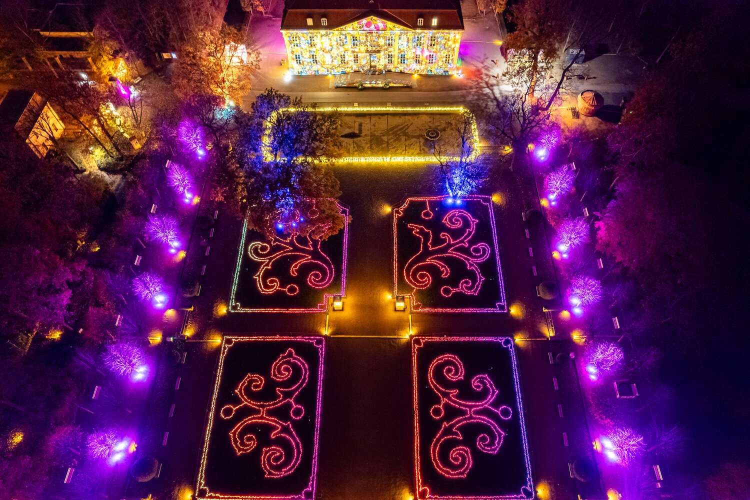 Куќата во Фридрихсфелде е илуминирана со џиновска проекција што ја трансформира фасадата на зградата во прекрасна цветна низа. Оваа илузија е придружена со осветлените цветни леи се на крајот од оваа зимска прошетка.