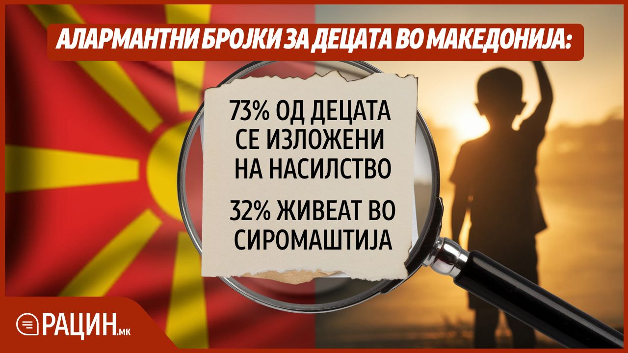 Сиромаштијата останува една од најголемите закани за децата – 32% од нив живеат под националната линија на сиромаштија, што е значително повеќе од 22% кај возрасните. Најпогодени се домаќинствата со самохрани родители (50%), семејствата со тројца или повеќе деца (53%) и ромските семејства, каде што 79% од децата живеат во сиромаштија.