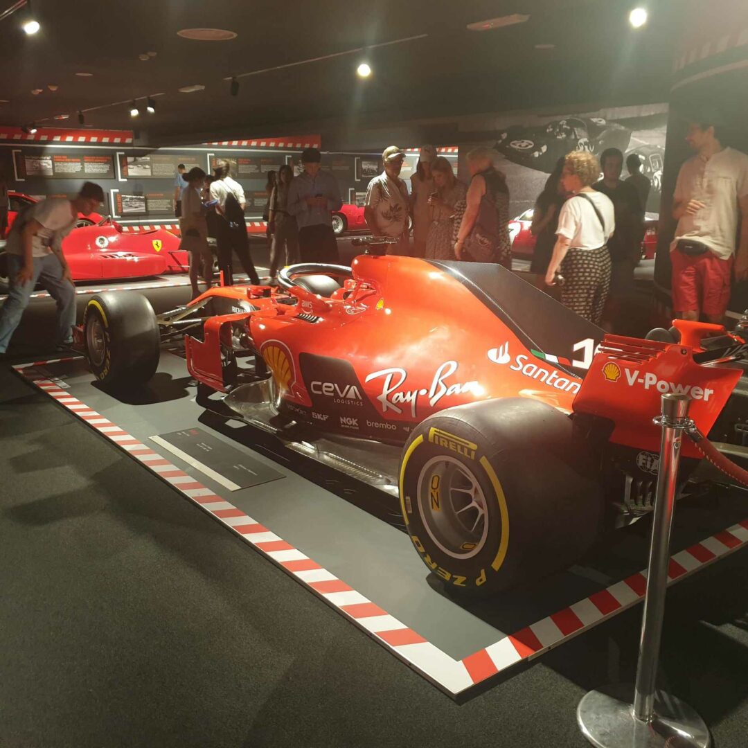 Во Близина на Болоња, Ферари има два музеи, еден е во Маринело, друг во Модена. Посетителите имаат можност да ги посетат и двата, но по препораки од блогери одбравме да одиме во Маринело и мислам дека не згрешивме. Само што ќе се приближиш до музејот те пречекуваат изложени ферари кои за +100 евра десетминутно возење можеш да го пробаш и доживееш чувството да возиш престижна моќна машина. Оставив тоа за друг пат пошто ми беше „соленко“. Влегуваш во музејот и те заболува глава од  дизајнерската умешност на креаторите на Црното коњче. Од уникатни автомобили, до болидите на формула еден на Ферари, па се до стотиците освоени титули во автомобилскиот и Формула 1 светот. Ана ме кандиса (до душа не ми требаше многу мора да признам) да извозам симулација во болид на Ферари на патека по избор од Ф1. Ја одбрав Монца, се разбира. Возиш некои шест и пол минути за 30 евра. Она, седнуваш во кокпит, со рачно менување на брзини, со кочење и давање на туража исто како во прав болид. Јако в крај, ако имате можност не се пропушта.