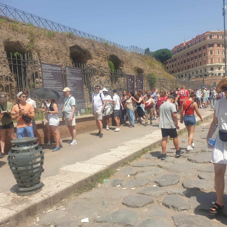 И како што рековме, најжешкиот ден во годината во Рим мораше да ни биде и најдолгиот. Нарамивме ранците и тргнавме кон храмот на гладијаторите. Дури чекавме да купиме влезници (добро Ана чекаше, мене ме набрка под сенка да не и правам проблем со притисокот), плаќавме за мало шишенце вода и по 2 евра, Совет, купувајте ако сте во можност, онлајн билети, посебно ако го посетувате Колосеумот и Ватикан во лето. И пијте вода, МНОГУ ВОДА!