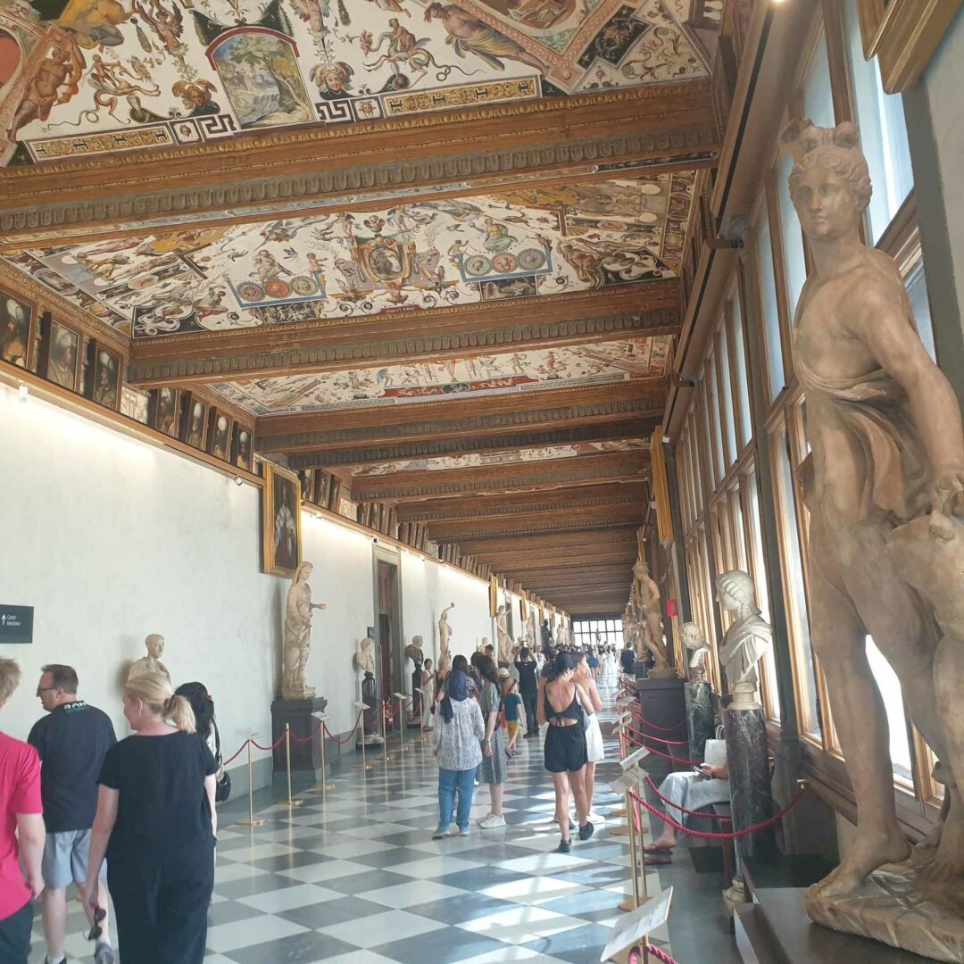 Па го имаш Уфици. Еден од најголемите и најстарите ликовни музеи во светот отворен за јавноста во 1765 година, а отворен за посетители со дозвола уште од XVI век. Изградбата на комплексот, како што потсетува Википедија, ја започнал Џорџо Вазари во 1560 година по порачка на војводата Козимо I од династијата Медичи, со цел да ги вдоми службите на фиренската управа. Најгорниот кат бил галерија за Медичи и нивните посетители во која се изложувала семејната збирка на римски скулптури. Музејот е отпочнат кога Ана Марија Луиза Медичи, како последен член на династијата, ги подарила сите семејни збирки на градот Фиренца.