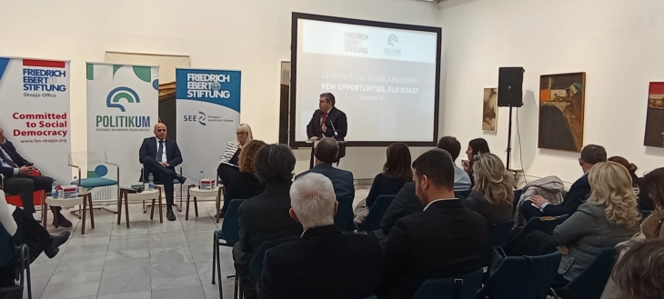 Ова беше порачано на панел-дискусијата „Геополитичко проширување на ЕУ: Нови можности, стари ризици?“, во организација на Фондацијата Фридрих Еберт – канцеларија Скопје и ПолитикУм – Институт за одржливи и иновативни политики.