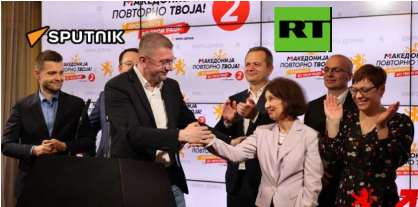 Првиот круг од претседателските избори во С. Македонија екстензивно беше следен од рускиот државен портал Спутник (издание на српски јазик). Освен стандардното пренесување на изборните резултати, аналитички беа пренесувани тези во контекст на надворешната политика на земјата во поглед на Русија и Европската Унија. Неминовно, Македонија беше претставувана како жртва или на внатрешни или на надворешни сили, но и како држава која е нападната од Албанците.