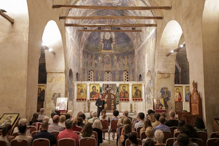 Во рамките на музичката програма на фестивалот „Охридско лето“, акустичниот простор на црковниот храм „Света Софија“, беше подиум на кој можевме да го слушаме звукот на соло виолината, произведен од еден од најактуелните виолинисти на денешницата, Црногорецот Роман Симовиќ. Препознаен како музичар со брилијантна виртуозност, природен талент и бескрајна имагинација, Симовиќ ги освојува најзначајните светски концертни сцени, како „Карнеги хол“, големата сала на Конзерваториумот „Чајковски“, салата „Марински“ во Санкт Петерсбург, „Рудолфинум“ во Прага, „Барбикан“ во Лондон Центарот за уметност во Сеул и тн., градејќи при тоа блескава солистичка кариера. Со својата интерпретација, Роман Симовиќ ја освои и сцената на „Охридско лето“, приредувајќи еден висококвалитетен солистички рецитал – на подиумот, само тој и неговата виолина.