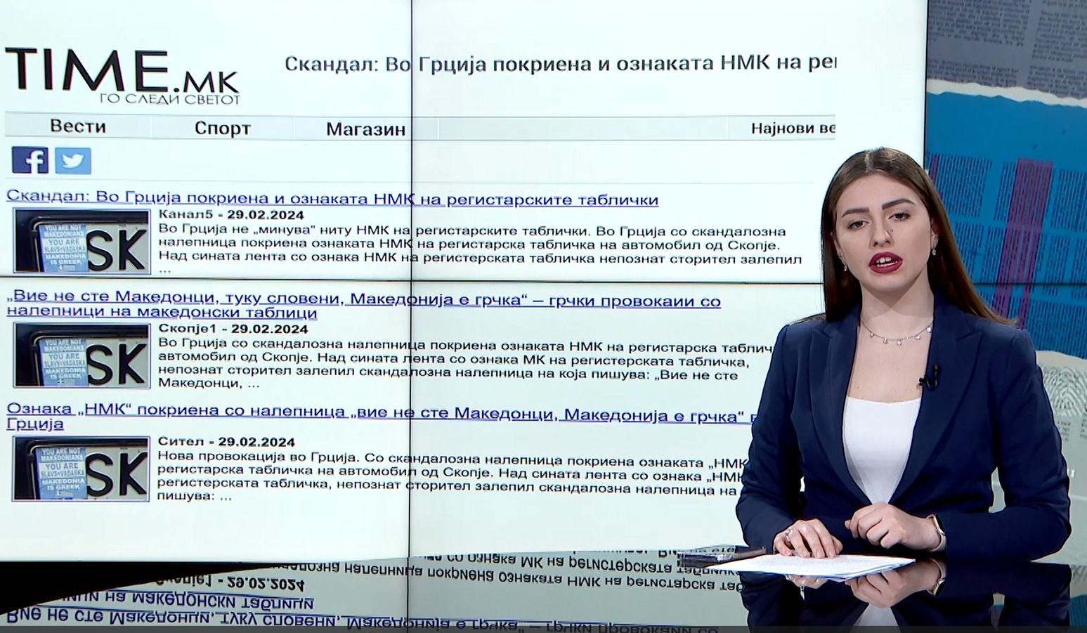 На 29 февруари 2024, порталот на ТВ Канал 5 објави текст со наслов: „Скандал: Во Грција покриена и ознаката НМК на регистарските таблички“. „Во Грција со скандалозна налепница покриена ознаката НМК на регистарска табличка на автомобил од Скопје. Над сината лента со ознака НМК на регистарската табличка непознат сторител залепил скандалозна налепница на која пишува – Вие не сте Македонци, вие сте Словени – Македонија е Грчка“, пишува во текстот, во кој се вели дека фотографијата од регистарската табличка е споделена на Фејсбук.