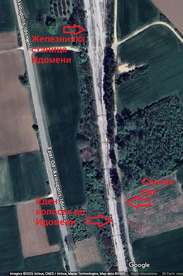 Сателитските снимки од влезот во железничката станица Идомени покажуваат единечен колосек, додека пак пругата од Солун кон Бугарија преку Промахона се реконструира со двојни колосеци, електрификација и капацитет за возови до 500 метри.