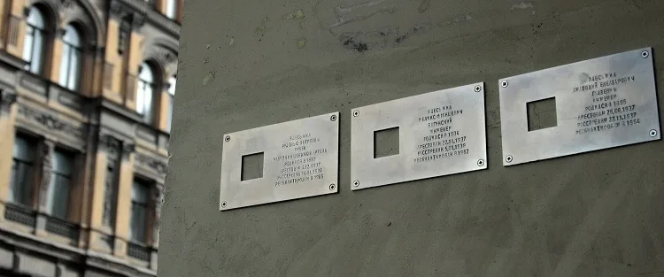 На почетокот на септември, 34 плочи во знак на сеќавање на жртвите на репресиите на Сталин исчезнаа од ѕидот на станбена зграда во Санкт Петербург (авенија Лесној 61), објави Комерсант, весник кој сè уште легално работи во Русија. Два месеци претходно истиот медиум пишуваше дека Москва го брише сеќавањето за оние кои биле масовно репресирани на ист начин. Во некои случаи, не се знае кој е виновен. иако, според каналот Телеглам СОТА, во неодамнешниот случај, одлуката ја донела станбена задруга.