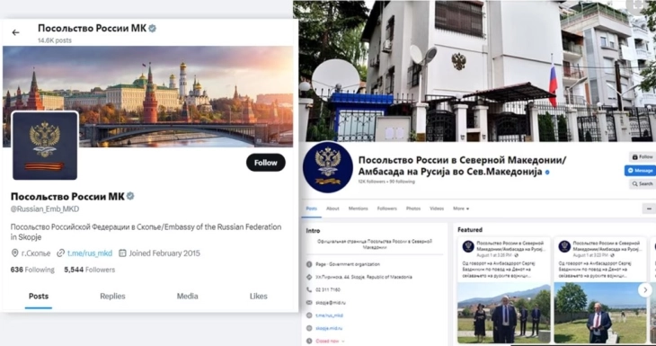 Руската амбасада во Скопје за две години објавила двојно повеќе постови на социјалните мрежи од дипломатските претставништва на ЕУ, САД, Британија… Според истражувањето на Центарот за проучување на демократијата од Софија (CSD) тоа е дел од пропагандната стратегија и хибридната војна на Кремљ