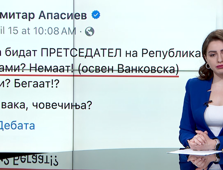 Таков пример е Фејсбук статусот на лидерот и пратеник на партијата „Левица“, Димитар Апасиев, објавен на 15 април 2024, во кој се тврди: „Сакаат да бидат ПРЕТСЕДАТЕЛ на Република…А програми? Немаат! (освен Ванковска)“.