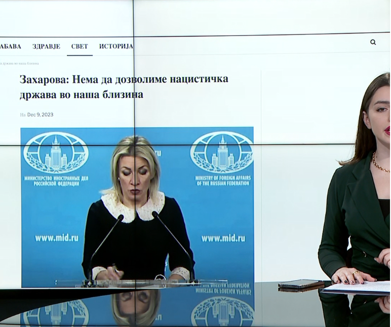 На 09.12.2023 порталот „МКД Пресс ЕУ“ објави текст со наслов „Захарова: Нема да дозволиме нацистичка држава во наша близина“, во кој е содржана следната изјава: „Нема да дозволиме во близина на нашите граници да постои агресивна нацистичка држава, од чија територија може да има опасност за Русија и соседните земји“.
