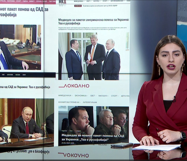 На пример, на 21 април 2024, порталот Република објави наслов: „Медведев за новиот пакет помош од САД за Украина: Тоа е русофобија“. Истиот наслов го објавија и порталот „Локално“, како и порталот „Скопје 1“. И порталот МКД.мк објави наслов: „Медведев за пакетот американска помош за Украина: Тоа е русофобија“.