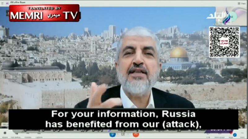 Поранешниот лидер на Хамас Калед Машал ја призна соработката на терористичката Хамас со Русија. Во неговото обраќање до исламистите во Керала тој зборува за тоа колку Русија и Кина се среќни со нападот врз Израел.