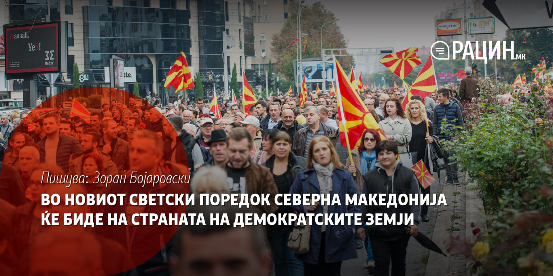Без разлика што на ова ново преструктуирање темпото му го даваат големите сили и сојузи, тоа секако ќе влијае и ќе ги повлече и сите останати земји во светот. Нема никакво сомневање дека изборот на Северна Македонија, според соговорниците на Рацин.мк на оваа тема, е веќе определен и во новиот светски поредок нашата земја ќе биде на страната на демократските земји.