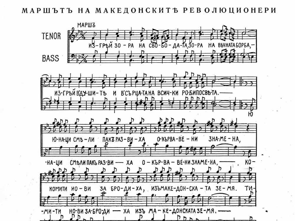 „Зората на слободата“ се повикува да изгрее во „Маршот на македонските револуционери“ од 1923, компониран од Александар Василев Морфов како марш на ВМРО (на чело со Тодор Александров).