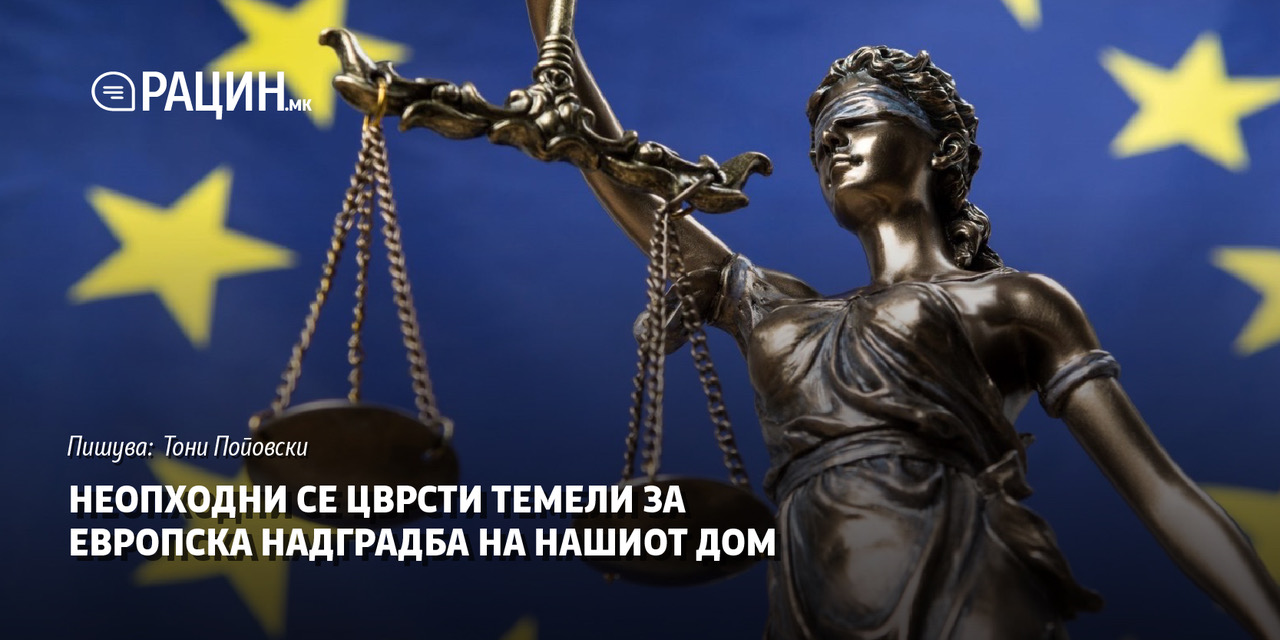 Согласно со новата Методологија за преговори, критериумот за владеење на правото е интегриран во првиот кластер на поглавја од европското право наречен „Темели на пристапниот процес“. Оттаму, сосема природно и логично е дека најголем дел од реакциите на објавениот Извештај на Европската Комисија за нашиот напредок во пристапувањето кон Европската Унија беа фокусирани на оваа тема. Притоа, покрај бинарното, црно – бело толкување на наодите за владеењето на правото претежно од страна на политичките партии и одредени амбивалентни, политичко – граѓански поединци и кругови, имаше и низа непристрасни и сеопфатни анализи на причините за овие оценки кои не смее да не остават рамнодушни. На овие анализи немам некое специфично дополнување, но притоа, од полза е да се потсетиме зошто владеењето на правото е врвен приоритет за Европската Унија и да објасниме зошто фокусот врз владеењето на правото е реобновен и во рамки на ЕУ од 2020 година, наваму.
