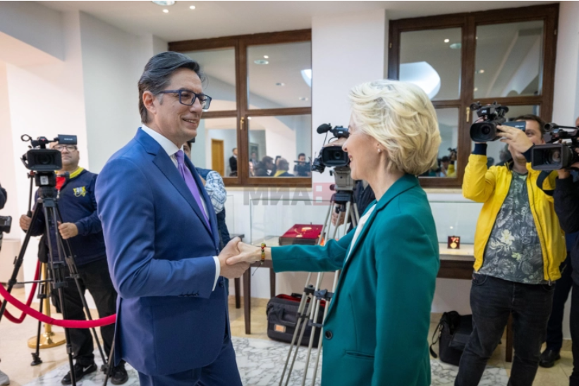Претседателот Стево Пендаровски вечерва ја прими претседателката на Европската комисија, Урсула фон дер Лајен, која престојува во посета на Северна Македонија. Како што соопшти прес-службата на претседателот, тие разговарале за процесот на пристапните преговори на земјава за членство во Европската Унија, за актуелните политички случувања во Северна Македонија и за тековните состојби во регионот.