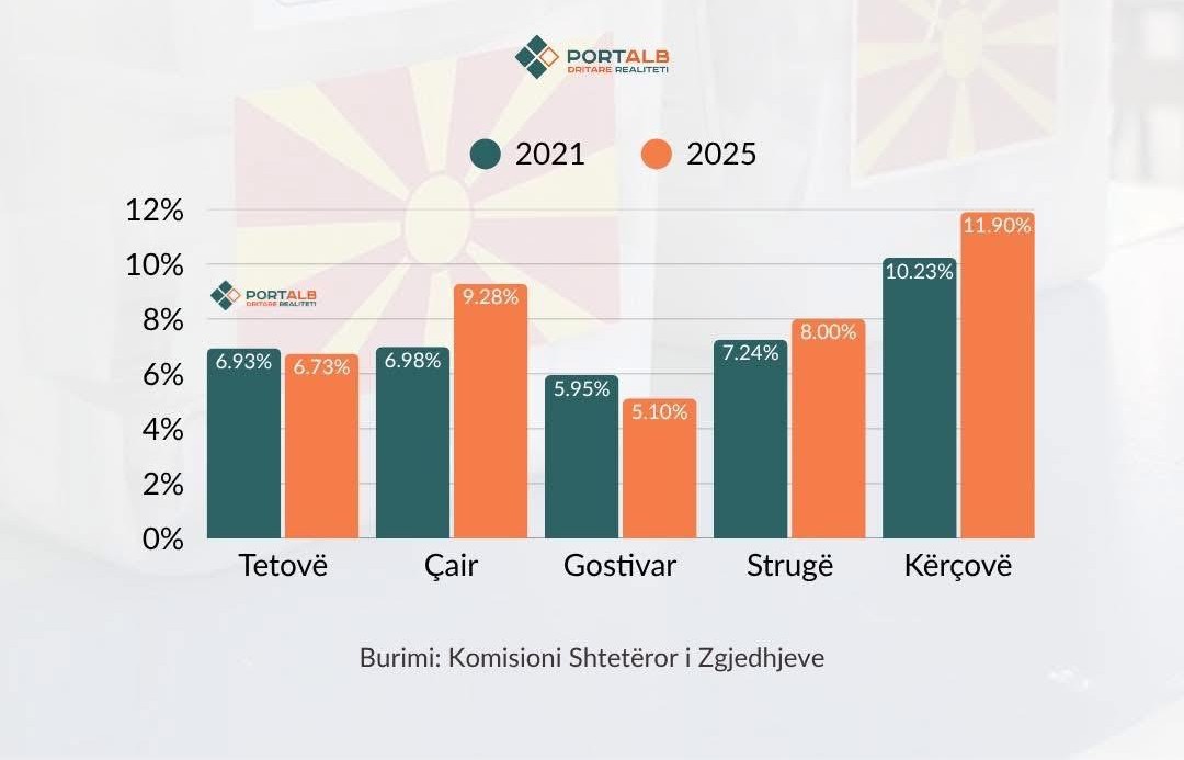 Во Чаир, Струга и Кичево има поголема излезност до 11 часот во споредба со 2021 година. Ова е според статистиката на Порталб.мк, а генерално излезеноста на локалните избори до 11:15 часот е 9,38 проценти, објави Државната изборна комисија (ДИК).
