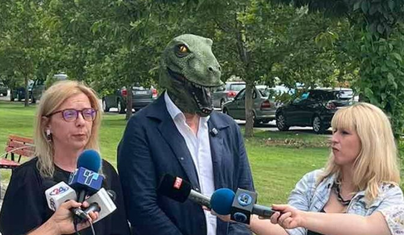 Ќе изумреме како диносаурусите, предупреди професорот Горан Марковски, кандидат за градоначалник на Скопје од „Независни заедно“, стоејќи крај Вардариште – сценографија што одамна е научена на реплики: чад, мирис на гнилост и редовни предизборни тури.