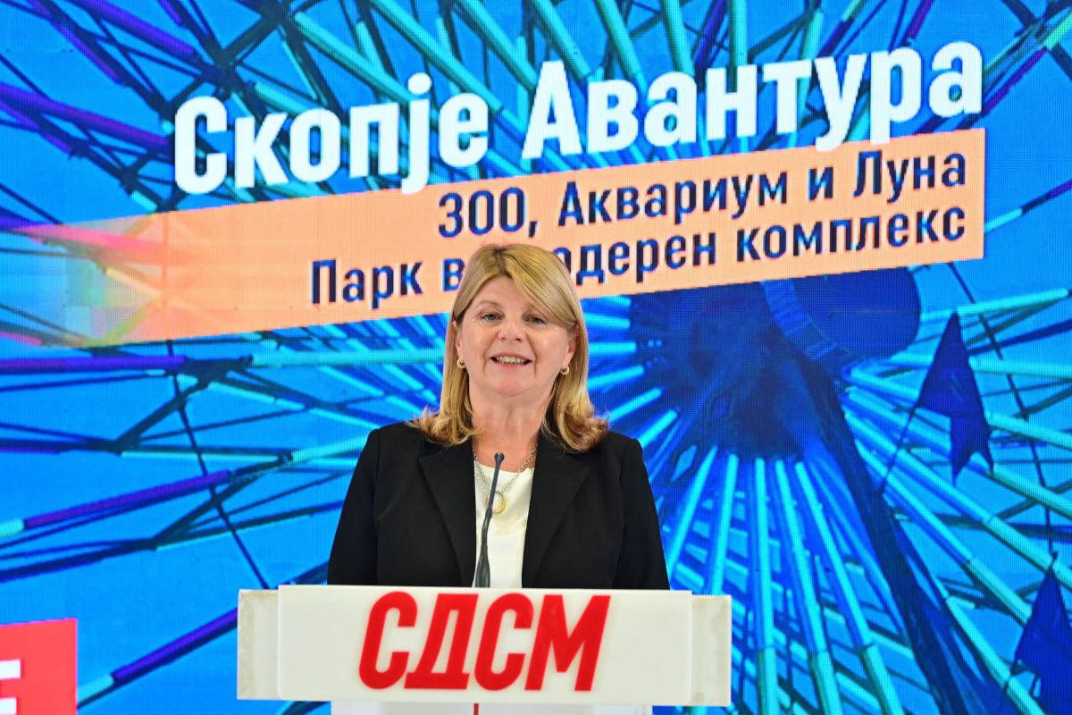 „Скопје мора да стане град на меѓународни настани, саеми, конференции. Ќе изградиме Конгресен центар за 3.000 посетители, со модерна инфраструктура за паралелни настани и културни програми“, рече таа.