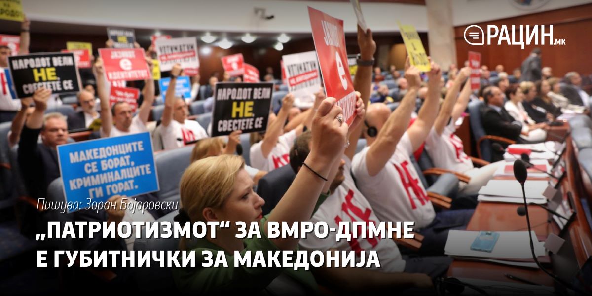 Ајде да го деконструираме наративот дека ВМРО-ДПМНЕ е единствената патриотска партија која стои на браникот на националните интереси на народот во држaвата кој ги опфаќа: Македонците, Албанците, Турците, Бошњаците, Ромите, Хрватите, Еѓипќаните, Бугарите и сите останати.