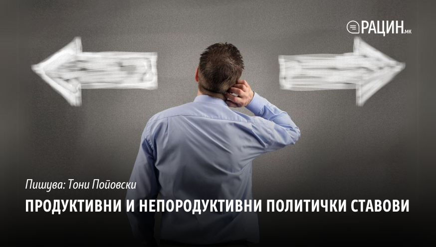 Непродуктивниот политички став се карактеризира со негативност, предрасуди и теории на заговор, поларизација, рефлекс да се прават опструкции по секоја цена, прибегнување кон лични напади или потпалувачка реторика и давање приоритет на партиските интереси пред општото добро. Од друга страна еден продуктивен политички став го одликува искрена подготвеност за внатрешен дијалог и да се работи заедно и мудро на решенија од кои сите би имале полза.