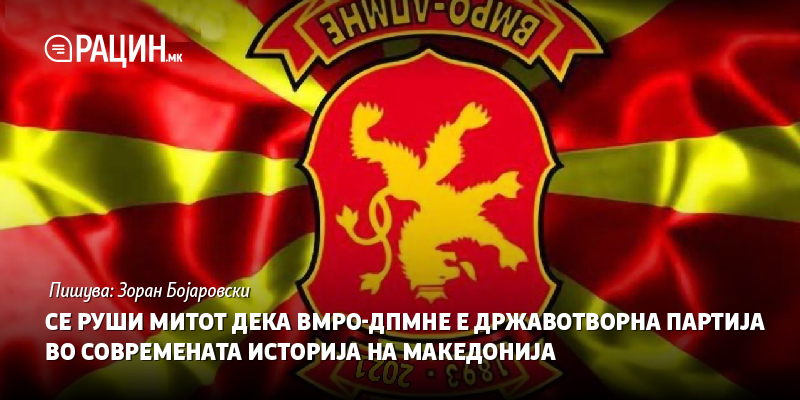 Се руши митот дека ВМРО-ДПМНЕ е државотворна партија, никогаш не била во современата историја на Македонија. Ова е неизбежниот заклучок што деновиве е заеднички за граѓаните и за аналитичарите во земјата, како и за нашите пријатели од меѓународната заедница.