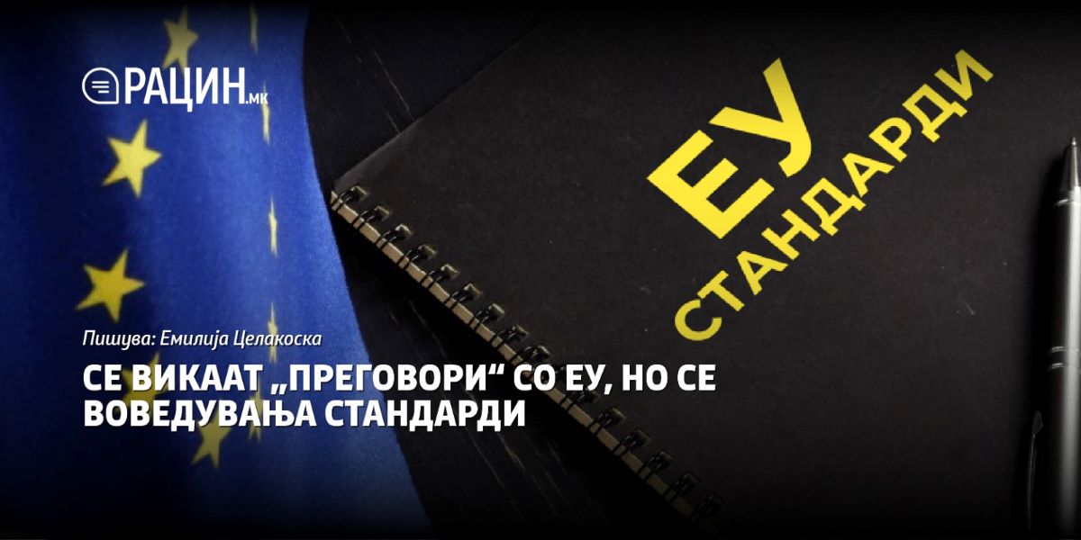 Има две јасни работи кои истакнати личности од ВМРО-ДПМНЕ не ги кажуваат: прво, не смеат да кажат дека се против ЕУ (иако се против), бидејќи ќе мора да се простат дури и од она инфериорно „придружно“ членство во Европската Народна Партија и второ, дека се против спроведување на тој сеопшт македонски интерес – стандардите на ЕУ заради привилегиите на грст луѓе. Инаку, како може некој да се противи на подобрени системи на сѐ на коешто се обраќаме во секојдневното живеење? Тоа и се поглавјата – воведување систем од економски, финансиски, здравствени, образовни, научни, истражни, судски, еколошки, сервисни стандарди!