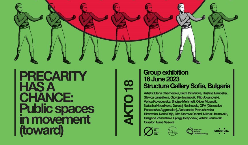 „ПРЕКАРИЈАТОТ ИМА ШАНСА – Јавни простори во движење (кон)“ е изложба која опфаќа различни уметнички потфати кои повторно ја бараат и редефинираат јавната сфера и јавниот простор преку креирање тактики за нејзино освојување и пристап за прекаризираните и замолчените.