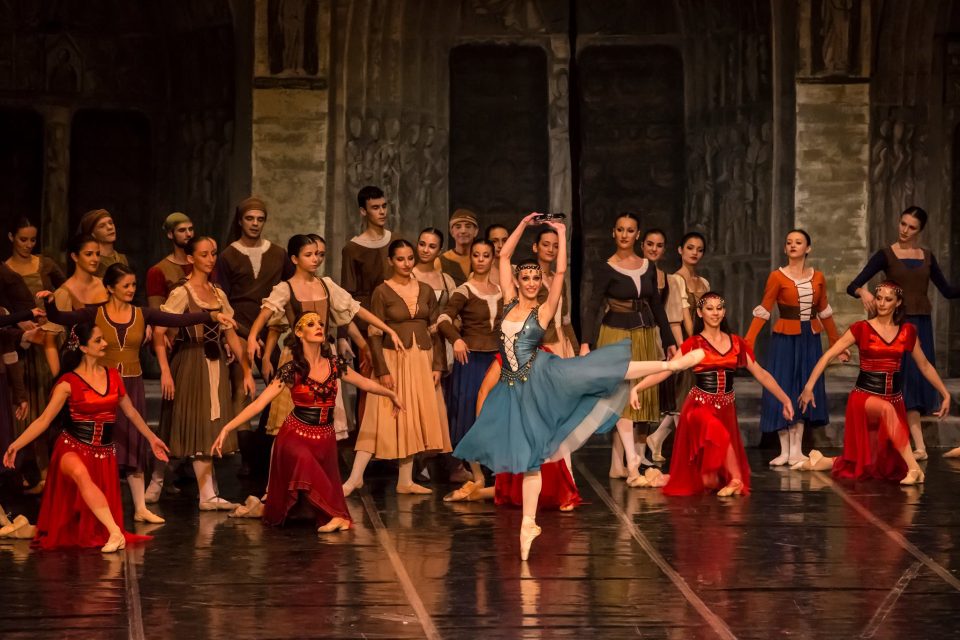 Приказната за убавата Есмералда, инспирирана од романот „Ѕвонарот на Богородичната црква” од Виктор Иго, ќе се изведе под диригентската палка на гостинот од Ерменија, Едуард Амбарцумјан, во кореографија на реномираниот кореограф од Русија, Михаил Крапивин, раскошната сценографија и костимографија се на Живојин Трајановиќ и Љупка Ристовска, концерт-мајстор е Јане Бакевски.