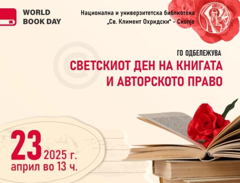 Националната и универзитетска библиотеката „Св. Климент Охридски“ – Скопје денеска  ќе го одбележи Светскиот ден на книгата и авторското право, прогласен од УНЕСКО во 1995 година.