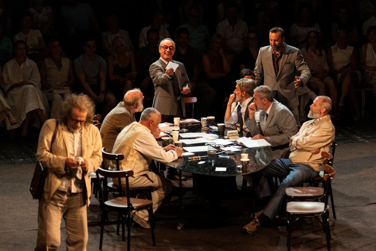 Маестрална театарска игра на „Охридско лето“ донесоа вчеравечер извонредните актери на Македонскиот народен театар играјќи ја претставата „12“ работена по мотивите на теледрамата „12 гневни луѓе“ од Реџиналд Роуз, совршено адаптирана на денешницата од режисерот Синиша Ефтимов.