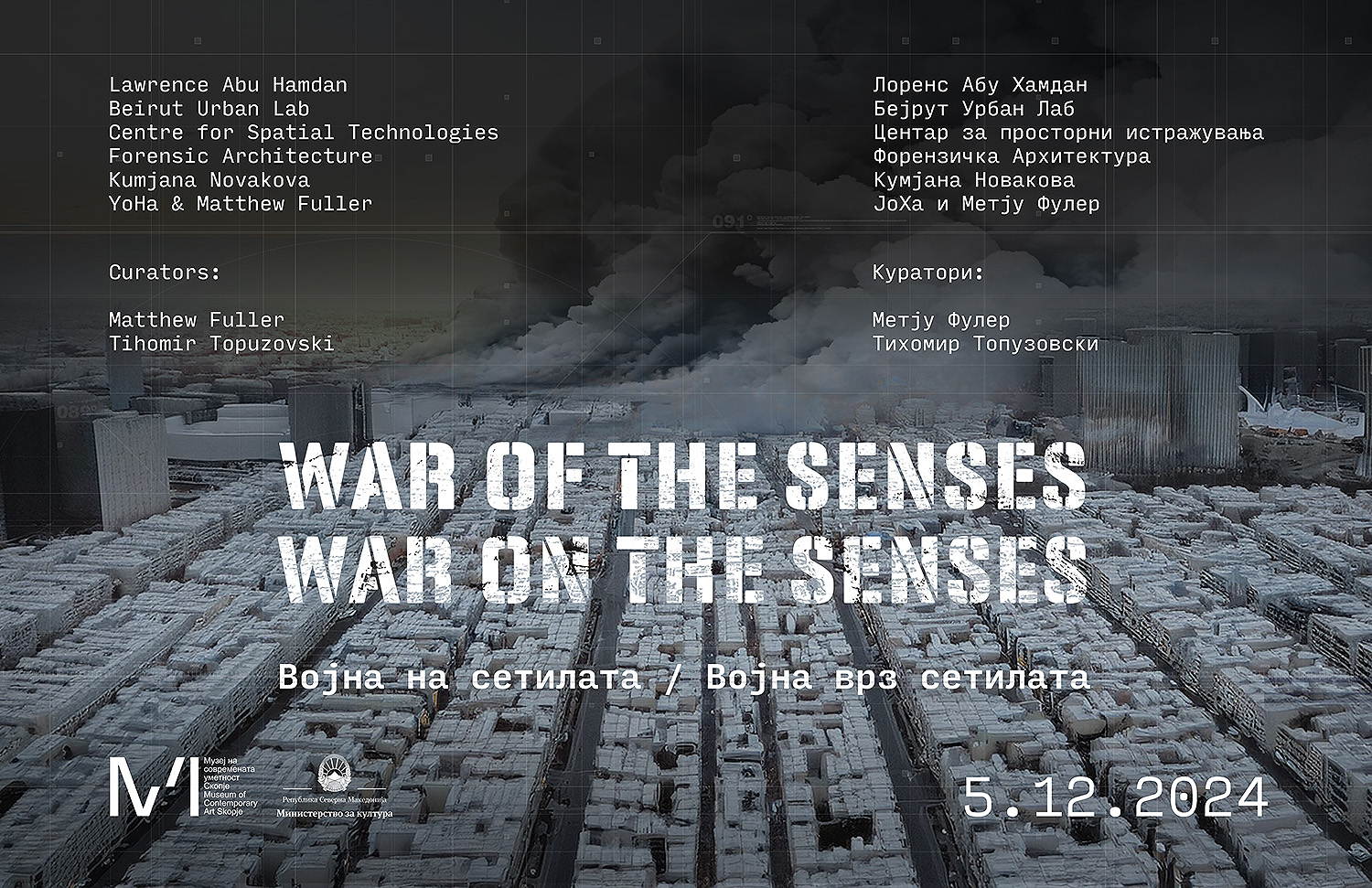 Во поставката „Војна на сетилата/Војна врз сетилата“ ќе бидат изложени дела на интернационални и македонски автори: Лоренс Абу Хамдан, Бејрут урбан лаб, Центар за просторни технологии, Форензичка архитектура, Кумјана Новакова, во соработка со Метју Фулер ќе се претстават и Мацуко Јокоџи и Грахам Харвуд од колективот ЈоХа.