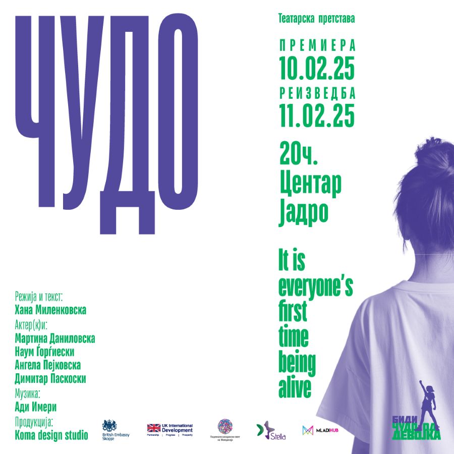 Во продукција на Koma design studio на 10 февруари во Културен центар Јадро премиерно ќе биде изведена театарската претстава за млади – „Чудо“ според текст и во режија на Хана Миленковска и со младата актерската екипа: Мартина Даниловска, Наум Ѓорѓиески, Ангела Пејковска, Димитар Паскоски и оригинална музика на Ади Имери. Следниот ден на 11 февруари е планирано репризно издание. Изведбите ќе почнат во 20:00 часот.