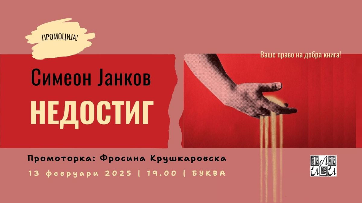 Денеска во 19 часот во кафе-книжарницата Буква ќе се одржи промоција на романот „Недостиг“ од Симеон Јанков. Романот е во издание на Или-Или и е дел од едицијата ПРОаЗА.