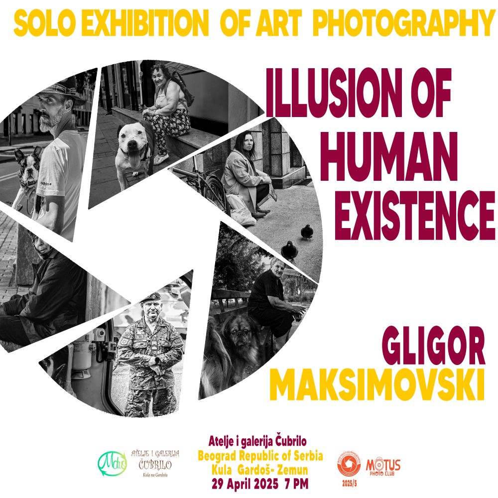 Здружението за промоција на интелектуални, мултикултурни и спортски вредности – МОТУС од Куманово заедно со својот Фото Клуб „МОТУС“ во период од 29 април (вторник) 2025, во просториите на Атеље и Галерија „Чубрило“ – Кула Гардош во Земун, Белград, ќе ја организира самостојната изложба на уметничка фотографија “Illusion of human existance” на својот член Глигор Максимовски.