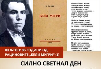 По повод 85 години од објавувањето на стихозбирката „Бели мугри“ од Кочо Рацин, Рацин.мк го објавува првиот фељтон посветен на оваа клучна книга со којашто ѝ се отвори патот на современата македонска книжевност. Авторка на фељтонот е универзитетската професорка Весна Мојсова-Чепишевска, истакнат рацинолог, авторка на книгата „Рацин и експресионизмот“ којашто е една од најреферентните научни … Продолжи со читање Силно светнал ден