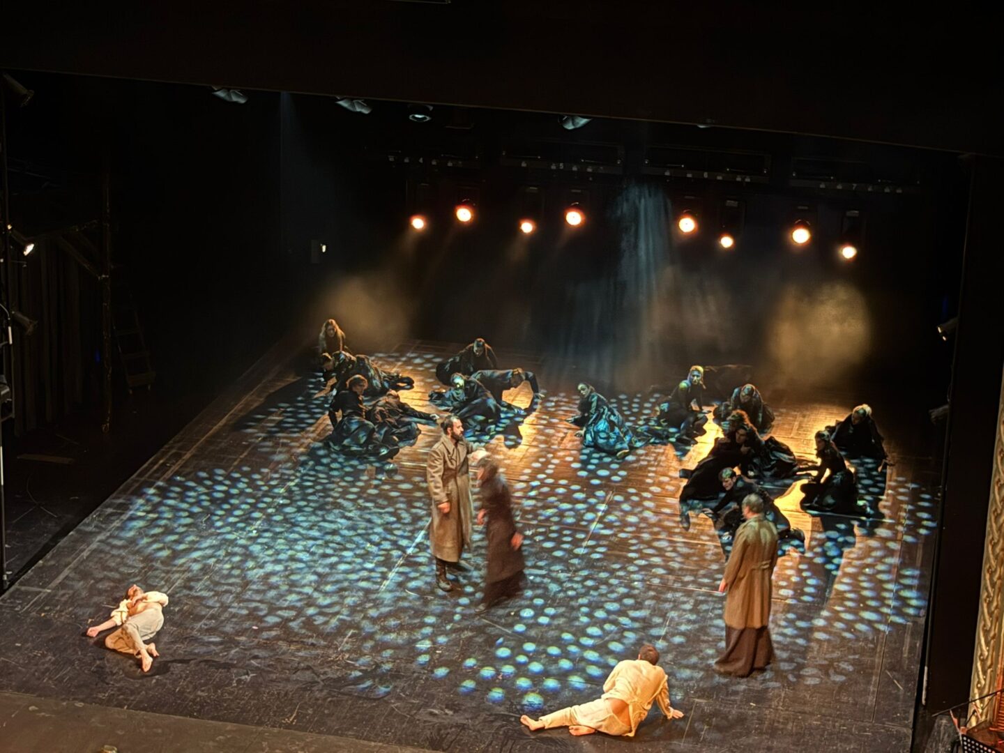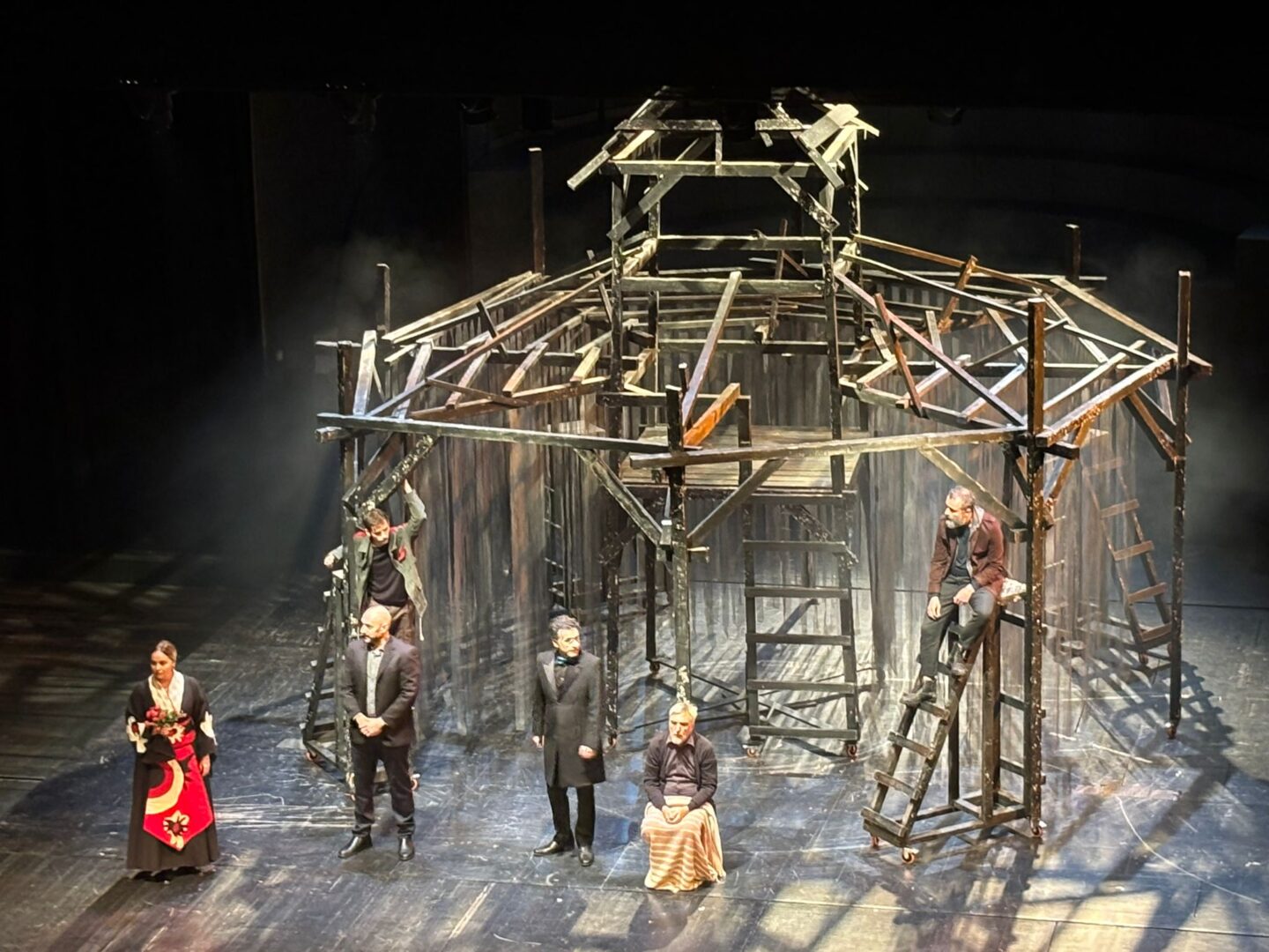 Сепак, токму тука се отвора и клучното прашање што останува да одекнува по аплаузот. Зошто, во еден ваков јубилеен, празничен контекст, доминира трагедијата? Зошто реминисценцијата на македонскиот театар, а со тоа и на македонската култура, речиси исклучиво се чита низ црнила, болка, очај, помор и историска траума? Претставата нуди моќни сцени на страдање, колективна тага и историска тежина, но не и ведрина, среќа или радост!