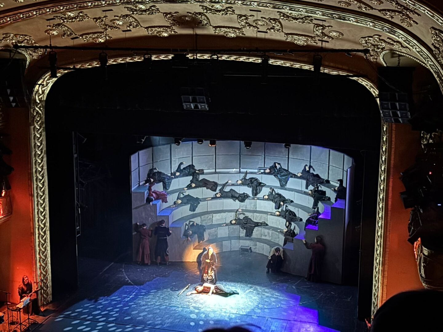 Од технички аспект, продукцијата е на исклучително високо ниво. Озвучувањето беше беспрекорно, музиката на Горан Трајкоски моќна и прецизно впишана во сценските слики, а аудиовизуелните елементи – особено 3Д-видеомапингот на Сергеј Светозарев – заслужуваат чиста пофалба. Сцените се менуваа динамично, слоевито и прецизно, создавајќи впечаток на жив, пулсирачки театарски организам кој се трансформира од минута во минута. Визуелно, спектаклот изгледаше импресивно, понекогаш и фасцинантно.