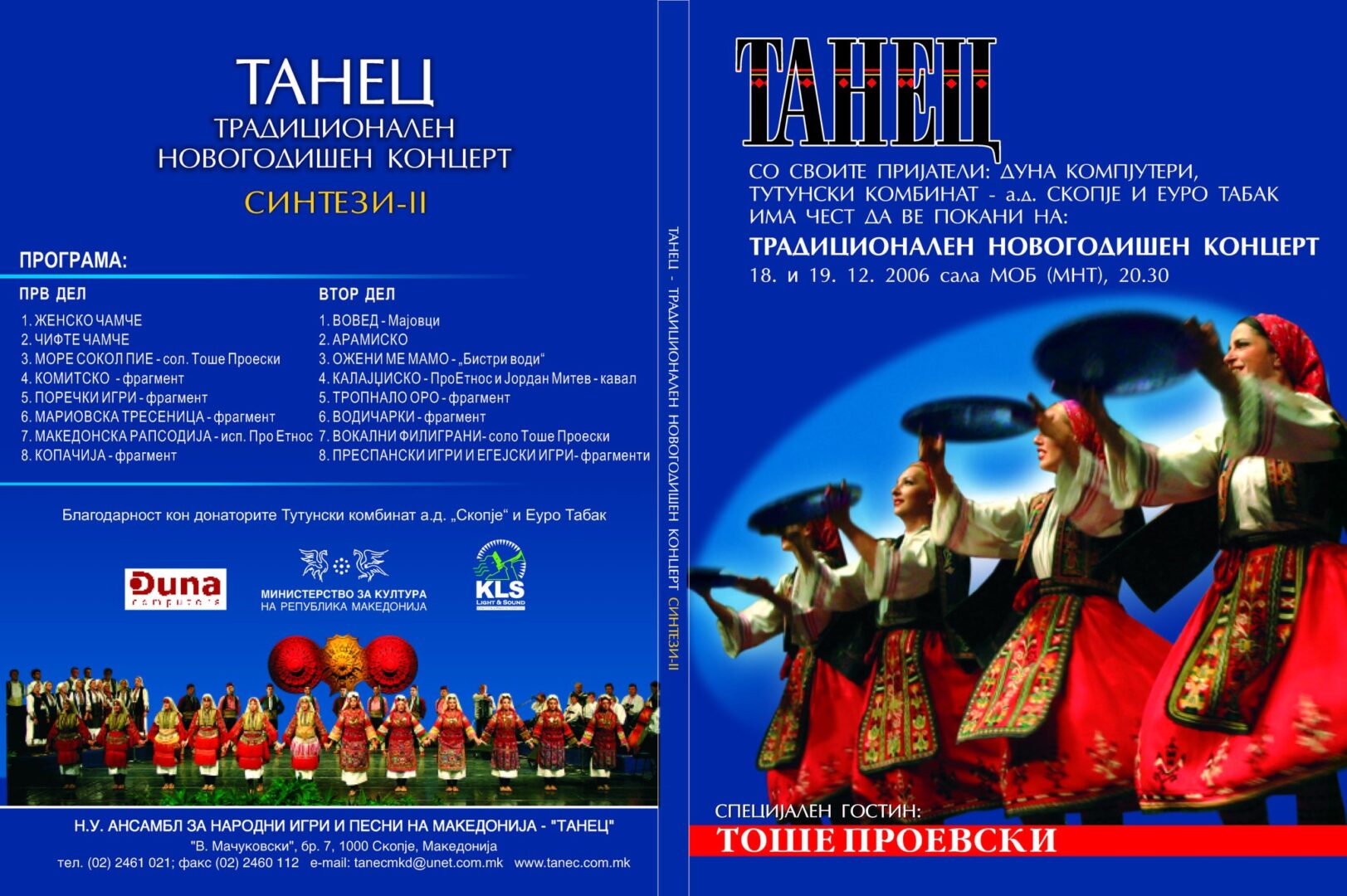„По неверојатниот успех на новогодишниот концерт од претходната, 2005-та година (две целосно распродадени сали на МОБ, со цена на билети од 1.000 денари, – нешто слично како денешни 3.000), тогашните пријатели и спонзори на „Танец“ – ТУТУНСКИ КОМБИНАТ – Скопје, ЕУРОТАБАК – Скопје, Дуна компјутери – Скопје и КЛС Продукција – Скопје, решија да застанат уште посилно зад овој проект на Танец, кој веќе беше играчки компетитивен (а уметнички посилен!) со тогаш светски познатите Lord of the dance и со Огновите од Анадолија“, напиша Коловски.