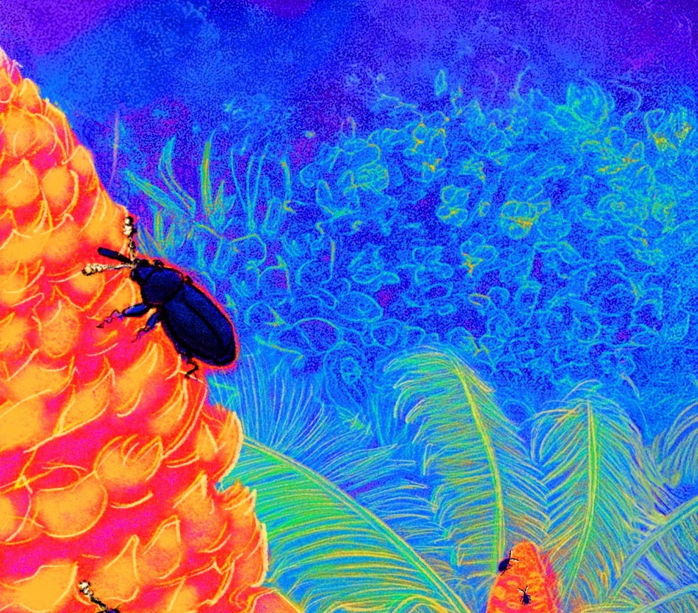 Истражувачите утврдиле дека бубачките Rhopalotria furfuracea се привлечени токму од загреаните делови на конусите, каде што инфрацрвеното зрачење е најсилно. Овој сигнал им помага да ги пронајдат растенијата ноќе, во густата вегетација на Амазон, каде визуелните сигнали речиси и не се употребливи.