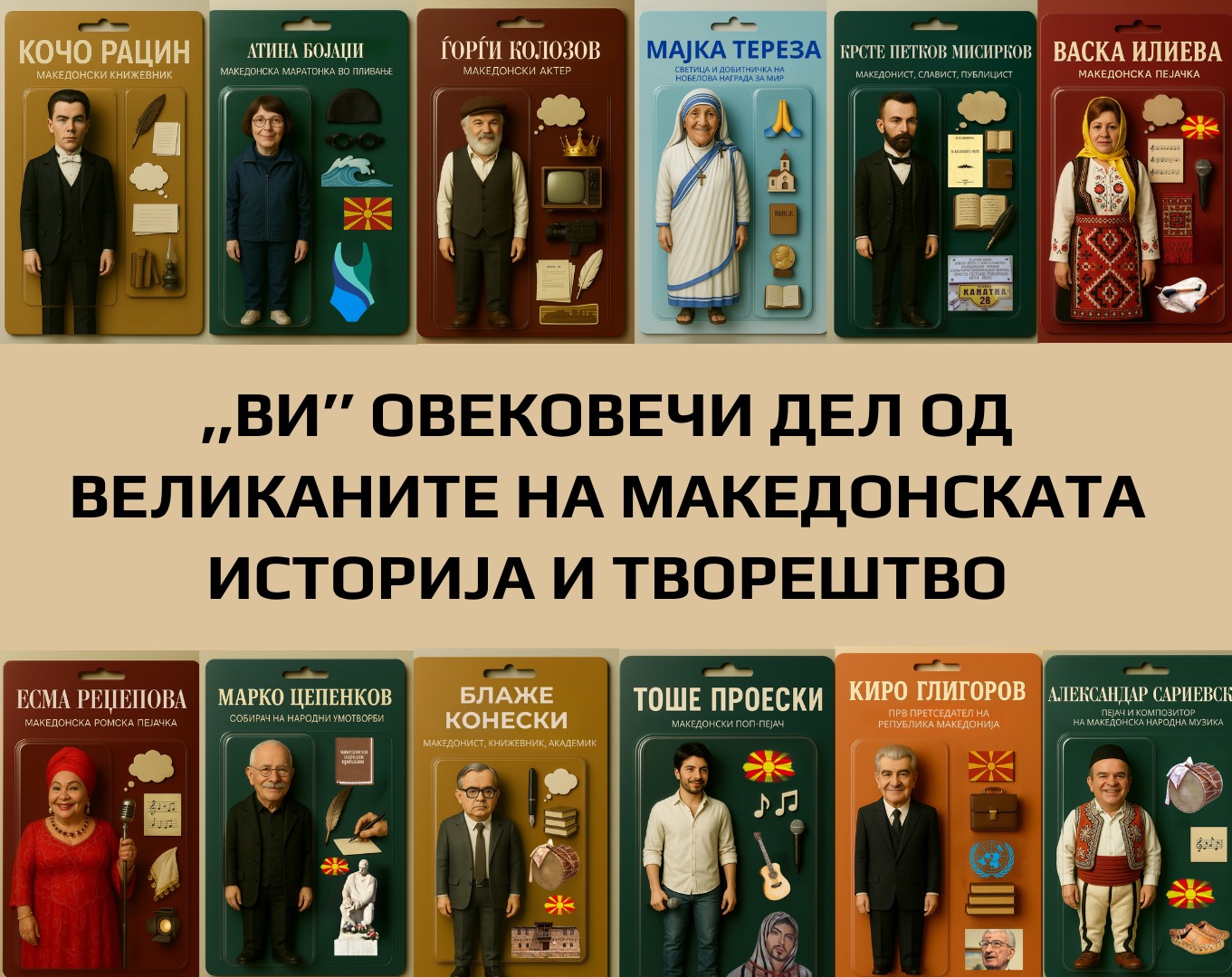 Тимот на Рацин.мк креираше такви фигури за познати личности од македонската историја, кои оставиле културен белег како Кочо Рацин, Блаже Конески, Крсте Петков Мисирков, Мајка Тереза, Марко Цепенков, но и Васка Илиева, Есма Реџепова, Тоше Проески, Александар Сариевски и Атина Бојаџи.
