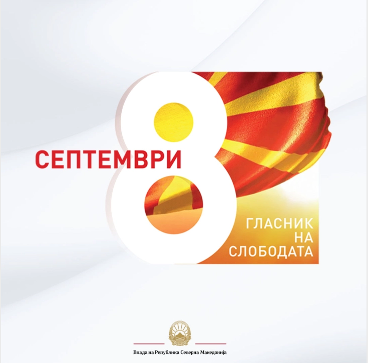 Под мотото „Гласник на слободата“ денеска со повеќе активности, во организација на Владата, се одбележува Денот на независноста на Република Северна Македонија – 8 Септември. Најавена е бесплатна посета на музејски и галериски поставки во ликовните салони и археолошки локалитети низ целата држава, тактичко показни вежби и изложба на единиците на Армијата и на Министерството за внатрешни работи, спортски активности во соработка со Агенцијата за млади и спорт, културно-уметнички програми, …