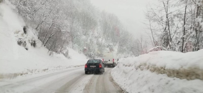 Сообраќајот на државните патишта се одвива во зимски услови по влажни коловози со остатоци од кашест снег на коловозот по интервенцијата на дежурните екипи на ЈП Македонија пат. Врнежи од снег со слаб интензитет се бележат во Кичево, на Пресека и Буково, информира АМСМ
