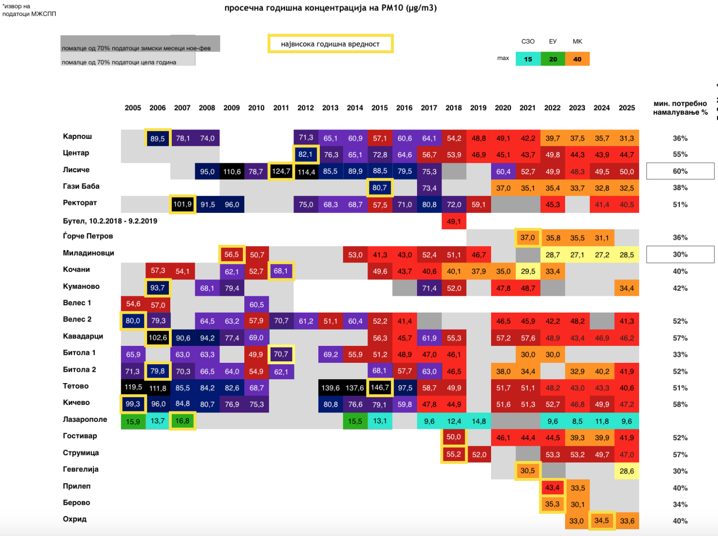 Поразително е што ниту Лазарополе, кое важи за рефренетно чисто подрачје, не ги исполнува здравствените граници за PM2.5.