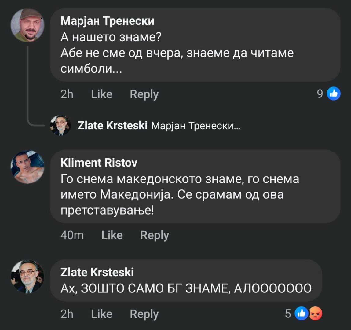 „Државничка посета без македонско знаме?“, „На која слика да го побараме македонското знаме? И ако го немале дали може да го убациме со фотошоп? Оти ова вака срамота“, „Каде е македонското знаме?“, „Претседателке, го допревте дното. Не само што го допревте почнавте да гребете по дното“, „Лажни патриоти насекаде. Гордана, кај ја остави државата што ја претставуваш?“, „Две бугарски знамиња и неиедно македонско. Срамота, Давкова!“ се дел од коментарите под објавата на претседателката.
